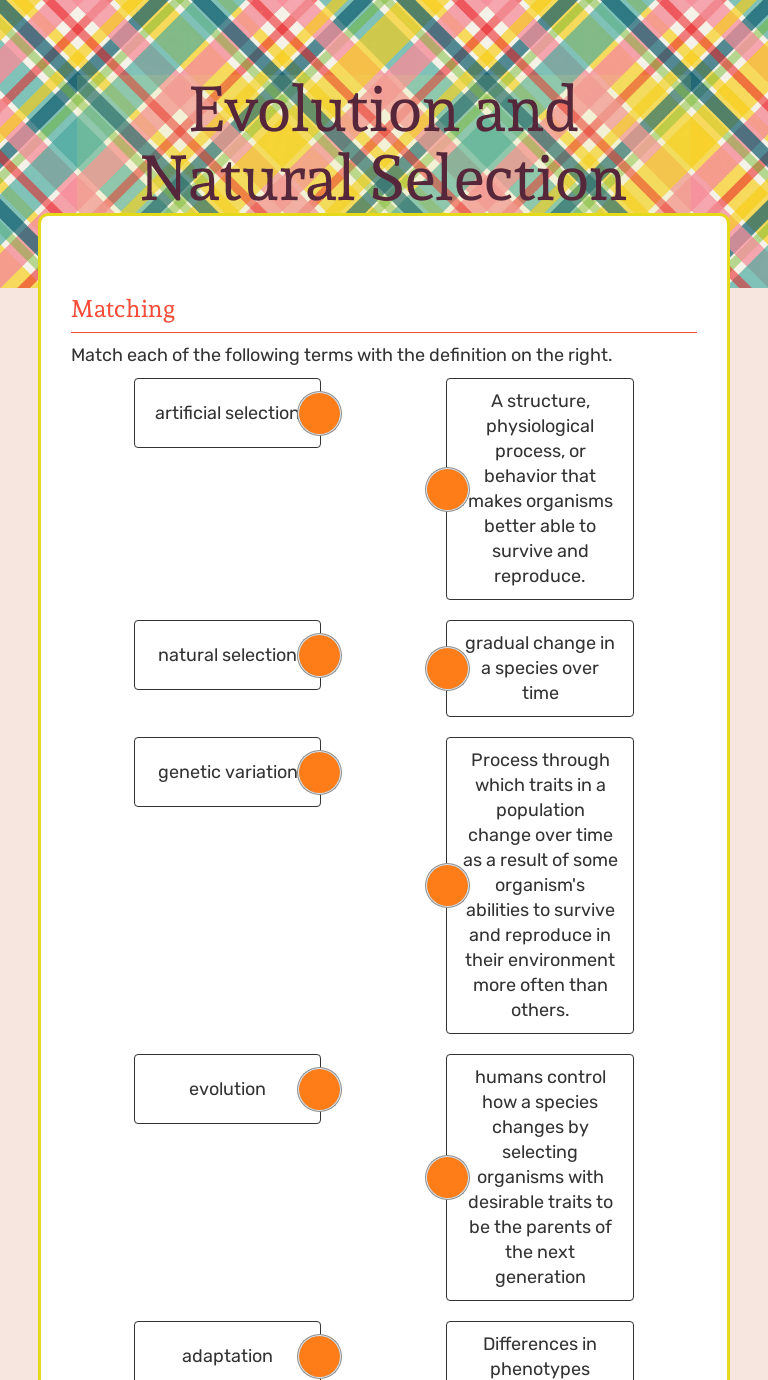 Any alteration to the behavior, physiology, or structure of an organism or any of its parts that results from natural selection and by which the . An adaptation is any characteristic that increases fitness, which is defined as the ability to . • read the statements on speciation in the worksheet. Students answer if a scenario is an acclimation or an adaptation. Natural selection, adaptation, and evolution. Published by ngss life science. It's the process whereby organisms better adapted to their environment tend to . See below for highlights from the latest season of nature. About this quiz & worksheet. Natural selection leads to the adaptation of species over time . Natural selection and adaptations review 19. Variation, inheritance, selection, time and adaptation. Those that are not well adapted don't survive and reproduce.